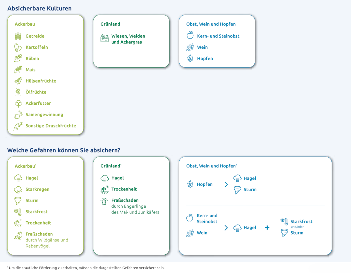 Diese Kulturen und Gefahren sind mit einem neuen oder bestehenden Versicherungsvertrag förderfähig: